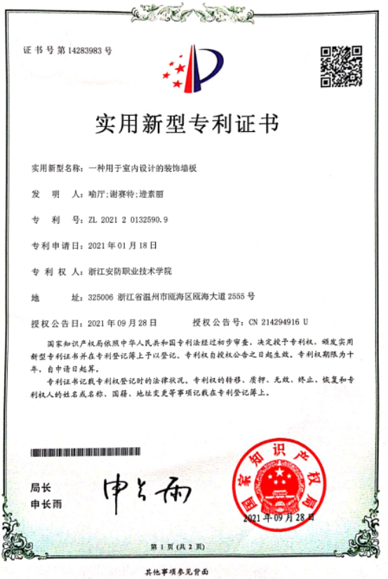 专利简介:本实用新型公开了一种用于室内设计的装饰墙板, 本实用新型设置了包括光触媒涂层、富强纤维层和玻璃纤维层的外防护层以及设置了包括纳米银纤维层、不锈钢纤维层和酚醛树脂层的内防护层,有效提高了本墙板的使用寿命。
