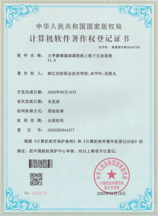 软件著作名称:大学素描基础课程线上线下互动系统V1.0