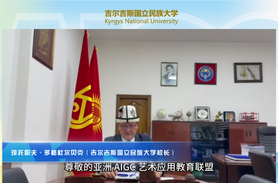 联盟副会长单位代表通过视频形式致辞。泰国兰实大学设计学院院长希拉达?瓦亚瓦特贾迈、吉尔吉斯民族大学校长琼托耶夫·多格杜尔贝克分别结合本国艺术设计教育现状,分享AIGC技术应用经验,表达了深化联盟合作、共促区域教育发展的强烈意愿。